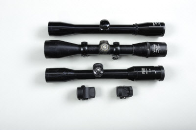 together with two further telescopic sights; and two Docter red dot sights (5)