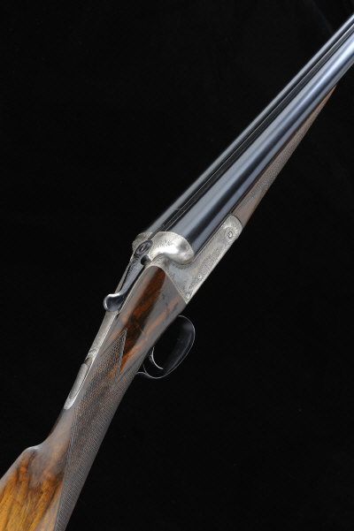 JOHN TISDALL A 12-BORE SINGLE TRIGGER BOXLOCK EJECTOR GUN 30-inch barrels with 2 1/2-inch chambers, about 1/4 and 3/4 choke borings, the frame with border and scroll engraving and retaining some original hardening colour, 14-inch figured stock with ribbed butt plate, 6lb. 10oz., nitro re-proof, leather case |