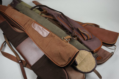 A GROUP OF TEN FULL LENGTH CANVAS GUN AND RIFLE SLIPS various patterns, fleece lined with leather straps (10) |