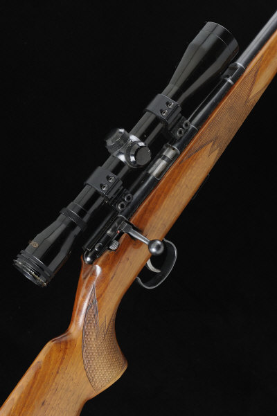 ANSCHUTZ A .22 BOLT-ACTION SPORTING RIFLE, NO. 368524 21 1/2-inch barrel fitted with a sound moderator, rear sight removed, the receiver mounted with a Tasco telescopic sight, bolt with side safety, detachable box magazine, the half length stock with pistol grip, cheekpiece and maker's butt plate, 6lb. 6oz., German nitro proof S1 |