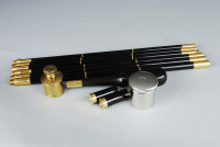 ASPREY A COLLECTION OF GUNMAKERS ACCESSORIES comprising: oil bottle, grease can, 20-bore snap caps and 2 three-piece shotgun cleaning rods |