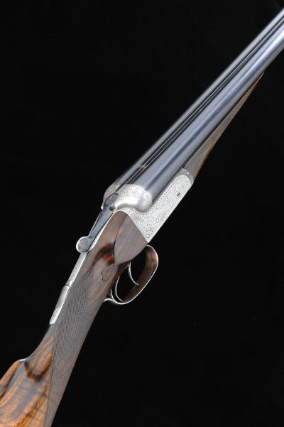 28-inch barrels with 2 1/2-inch chambers about cylinder and improved cylinder borings, the frame with foliate scroll engraving surrounded by highly detailed borders, the maker's name signed within a scrolling banner, 13 3/4-inch highly figured stock, 6lb. 5oz., nitro proof