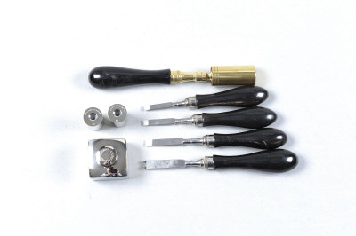 A SET OF PURDEY PATTERN GUN CASE ACCESSORIES comprising: three turnscrews, striker key, chamber brush, named oil bottle and 12-bore snap caps (8) |