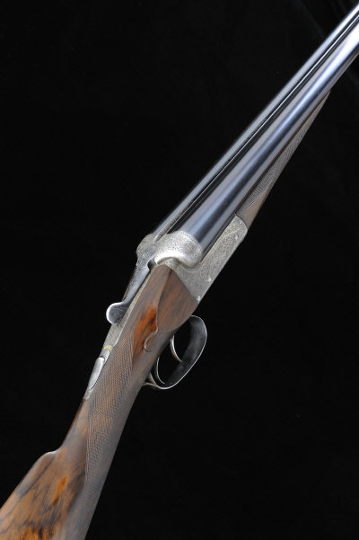 J. BLANCH & SON A 12-BORE BOXLOCK EJECTOR GUN, NO. 6293 29-inch barrels with 2 1/2-inch chambers, about improved cylinder and 3/4 choke borings, top extension, the frame and top lever with scroll engraving and retaining traces of original hardening colour, the maker's name signed within a scrolling banner, 15 1/2-inch well figured replacement stock, 6lb. 13oz., nitro proof, canvas case with Charles Ingram label |