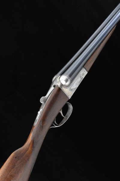 AYA A 12-BORE NO.4 MODEL BOXLOCK EJECTOR GUN, NO. 205814 26-inch barrels with 2 3/4-inch chambers, about 1/4 and 3/4 choke borings, the frame with border and scroll engraving, 14 1/4-inch figured stock, 6lb. 1oz., Spanish nitro proof