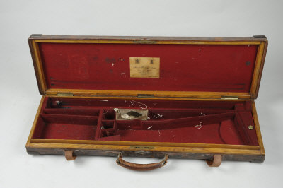 A BRASSBOUND OAK AND LEATHER GUN CASE