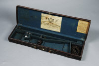 with compartment for 30-inch barrels with original oil bottle and snap cap, handle and straps missing