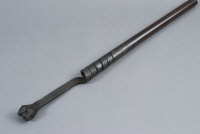 A DEMONSTRATION SECTION OF DAMASCUS BARREL the two stub twist piece starting with nail iron, beaten and fused flat and wound to produce barrel section |