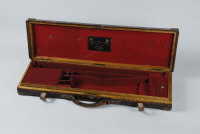 A BRASSBOUND OAK AND LEATHER GUN CASE