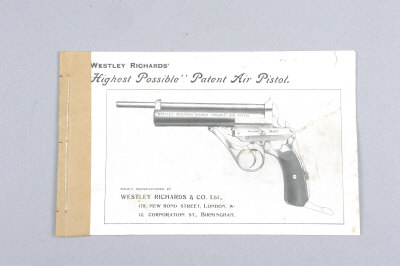 WESTLEY RICHARDS A RARE INSTRUCTION BOOKLET FOR THE "HIGHEST POSSIBLE" PATENT AIR PISTOL circa 1907, the 12 page illustrated booklet advertising and demonstrating the operation of the air pistol |