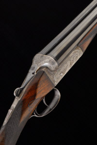 26-inch barrels with 2 1/2-inch chambers about improved cylinder and full choke borings, the frame engraved with scrollwork and scenes and duck in wetland landscapes, retaining some original hardening colour, 15-inch figured stock including rubber recoil pad, 6lb. 6oz., nitro proof