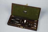 A CASED ROSEWOOD GUN CLEANING KIT