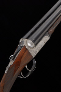 28-inch barrels with 2 3/4-inch chambers about improved cylinder and 1/2 choke borings, the frame with fine scroll engraving, 15 1/2-inch well figured stock with drop points and including 3/4-inch extension and recoil pad, 6lb. 8oz., nitro proof