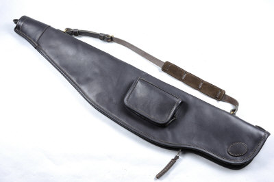 A LEATHER RIFLE SLIP the full length dark leather slip with fleece lining and ammunition pocket |