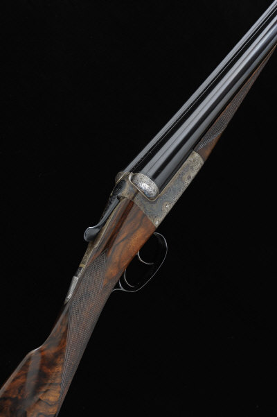 HOLLAND & HOLLAND A FINE 12-BORE "NORTHWOOD" MODEL BOXLOCK EJECTOR GUN, NO. 37251 28-inch barrels with 2 3/4-inch chambers, about improved cylinder and 1/2 choke borings, the frame and top lever with scroll engraving and retaining much original hardening colour, 15-inch highly figured stock, 6lb. 6oz., nitro proof, in its maker's lightweight leather case S2 The maker confirms that the gun was built in 1962. |