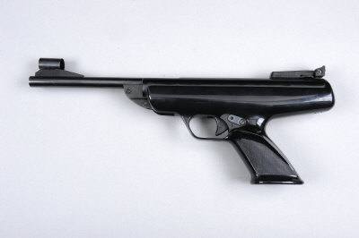 BSA A .22 "SCORPION" MODEL AIR PISTOL, NO. RB32713 8-inch barrel with ramp fore sight and adjustable rear sight, plastic grips and safety catch; together with an Italian .177 air pistol, no. 074016 (2) |