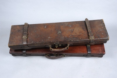 A LEATHER SINGLE CASE with compartment for 30-inch barrels; together with a further leather single case (2) |