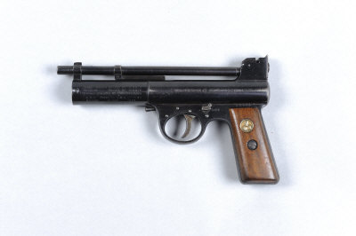WEBLEY & SCOTT A FINE .177 MK I MODEL AIR PISTOL, NO. 26314 7-inch barrel, the frame impressed with patent dates, safety catch, smooth walnut grips with Webley medallion, the backstrap impressed with the retailer's stamp "W. R. Pape, Newcastle", retaining much original finish overall |