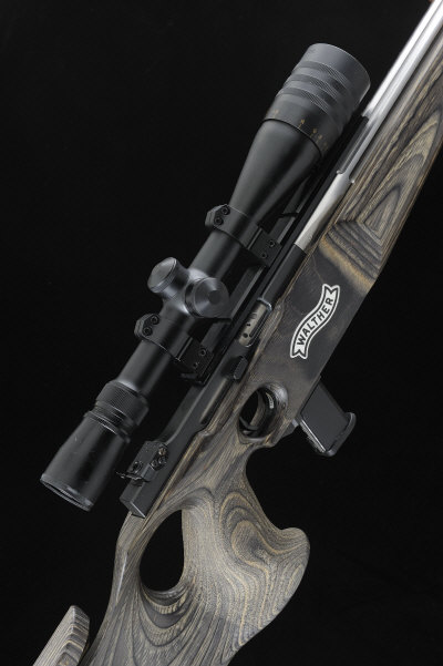 18-inch heavy fluted stainless steel barrel including muzzle brake, mounted with a Weaver telescopic sight, adjustable rear sight, element broken, detachable box magazine, the three quarter length laminated thumbhole stock with adjustable cheekpiece and recoil pad, 15-inch pull, 10lb., German nitro proof, in its maker's plastic case