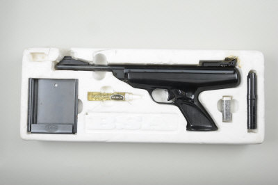 8-inch barrel, adjustable rear sight, in its maker's carton with cocking aid, etc