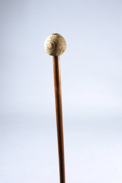 LORD RIPON'S CORK-HANDLED WALKING CANE the cane with spherical knop, with gold escutcheon engraved with his coat-of-arms, 34-inches
