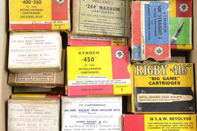 KYNOCH A COLLECTION OF INERT SPORTING RIFLE AMMUNITION together with a quantity of empty vintage ammunition boxes, various calibres S2 This lot will not be available for viewing in London. It can be viewed by appointment at our office in West Sussex. |