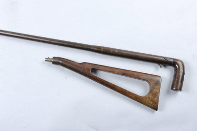 COGSWELL & HARRISON A .410 WALKING STICK GUN, NO. 14842 26-inch barrel, the wooden grip fitted with its detachable shoulder strap, black powder proof