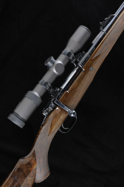 W. J. JEFFERY & CO. A FINE .375 H&H MAGNUM BOLT-ACTION SPORTING RIFLE, NO. 39834 25-inch barrel with hooded ramp fore sight, raised rear sight with gold lined folding leaves, the receiver mounted with a Zeiss Duralyt 1.2-5x36 telescopic sight with quick detachable mounts, bolt with side safety, recoil stud, the magazine with hinged base plate, engraved with foliate scrollwork, the calibre and serial number inlaid in gold, 10lb. 9oz., nitro proof, in its full length crocodile case with cleaning rod, tools, etc S1 The maker confirms that the rifle was completed in 2010 and it appears virtually unused. |
