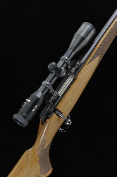 22 1/2-inch barrel, the receiver mounted with a Swarovski Habicht 6x42 telescopic sight, magazine with hinged base plate, the half length stock with pistol grip, cheekpiece and rubber recoil pad, 14-inch pull, 8lb. 11oz., nitro proof