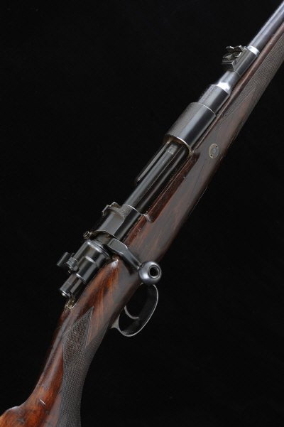HOLLAND & HOLLAND A .240 APEX BOLT-ACTION SPORTING RIFLE, NO. 958 23 1/2-inch barrel with raised fore sight with folding hood, the rear sight with folding leaf to 350, the receiver with stippled top surface, bolt with flag safety, recoil stud, the half length stock with pistol grip and maker's butt plate, impressed with the Armoury number 140, 14 1/2-inch pull, sling eyes, 6lb. 14oz., nitro proof S1 The rifle was built in 1929. |