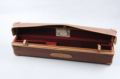 JAMES PURDEY & SONS A LIGHTWEIGHT LEATHER SINGLE MOTOR CASE with compartment for 30-inch barrels, with canvas outer cover, new and unused |