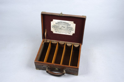 W. R. PAPE A BRASSBOUND LEATHER CARTRIDGE MAGAZINE for about 400 cases, with leather straps and oak dividers |