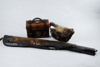 A CROCODILE SKIN AND LEATHER GUN SLIP, CARTRIDGE BAG AND MAGAZINE