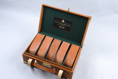 HOLLAND & HOLLAND A BRASSBOUND LEATHER CARTRIDGE MAGAZINE for about 250 cases, with leather straps and dividers, in new and unused condition |