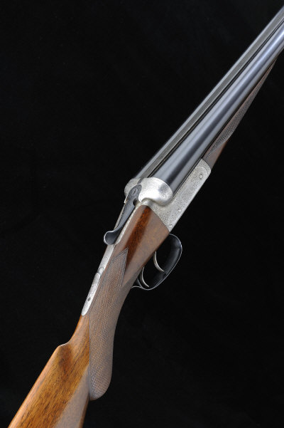 J. R. GOW & SONS A 12-BORE BOXLOCK EJECTOR GUN, NO. 66954 28-inch barrels with 2 1/2-inch chambers, about full and 3/4 choke boring, broad file rib with top extension, the frame and top lever with scroll engraving, 14 1/4-inch stock with semi pistol grip, 6lb. 14oz., nitro proof, leather leg-of-mutton case |