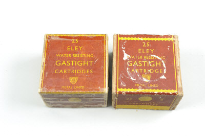 ELEY TWO BOXES OF 8-BORE SHOTGUN CARTRIDGES 2oz. load, BB and No.2 shot S2 This lot will not be available for viewing in London. It can be viewed by appointment at our office in West Sussex. |