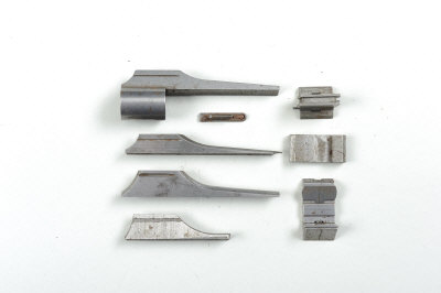A GROUP OF RIFLE SIGHTS, IN THE WHITE comprising: 4 ramp fore sight blocks, 2 folding leaf sights and sight block (7) |