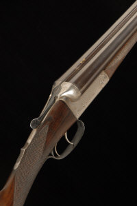 28-inch barrels with 2 1/2-inch chambers, about cylinder and 1/4 choke borings, top extension, the frame with scroll engraving, 14 1/2-inch figured stock including ebonite extension, 6lb. 2oz., nitro reproof