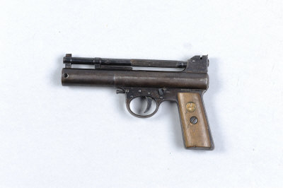 WEBLEY & SCOTT A .22 MARK 1 AIR PISTOL, NO. 48946 6 1/2-inch replacement barrel, the frame with patent dates and safety catch, worn overall; together with a .177 Haenel model 46 air gun (2) |