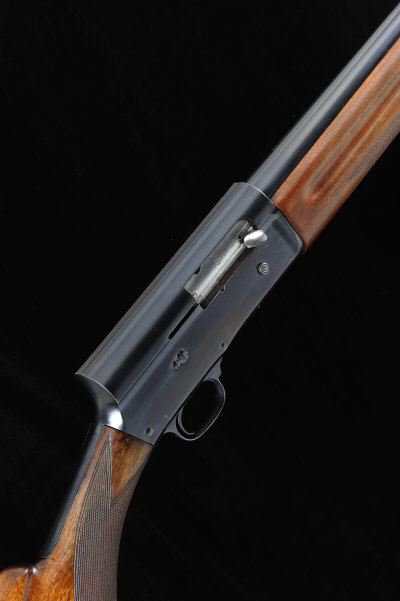 F. N. BROWNING A 12-BORE A5 SELF-LOADING GUN, NO. 228001 29 1/2-inch barrel with 2 3/4-inch chamber, about 1/2 choke boring, the plain frame with magazine cut-off and sliding safety catch, restricted magazine capacity, 14 1/2-inch figured stock with semi pistol grip and maker's butt plate, sling swivels, 7lb. 13oz., Belgian nitro proof S2 |