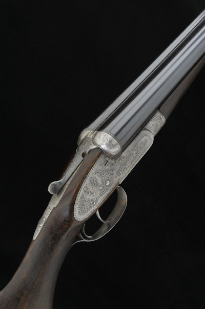 F. BEESLEY A 12-BORE SIDELOCK EJECTOR GUN, NO. 1268 29 3/4-inch barrels with 2 1/2-inch chambers, about 1/4 choke borings, additional interchangeable maker's barrels out-of-proof, the frame, locks and top lever with bouquet and scroll engraving, the maker's name signed within a banner, 14 1/2-inch figured stock with semi pistol grip including 1-inch extension, 6lb. 12oz., nitro proof, in its maker's brassbound oak and leather case S2 |