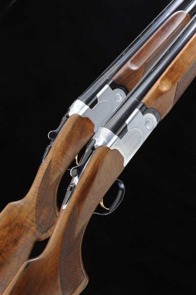 P. BERETTA A COMPOSED PAIR OF 12-BORE "686 SPECIAL" MODEL SINGLE TRIGGER SIDELOCK EJECTOR OVER AND UNDER GUNS, NOS. D60439B AND D61399B 28-inch monobloc barrels with 2 3/4-inch chambers, about 1/4 and 1/2 choke borings, machined ventilated ribs, the frames and gold numbered top levers with bouquet and scroll decoration, selective single triggers, 14 1/4-inch figured stocks with pistol grips and maker's butt plates, 7lb., Italian nitro proof, in a leather double gun slip S2 |