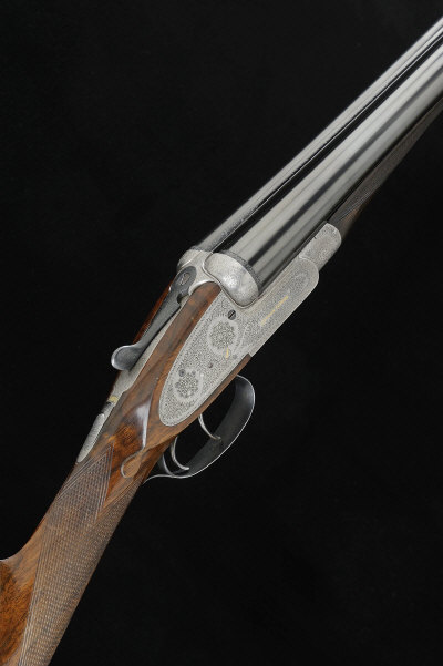 ARTHUR TURNER A 12-BORE SIDELOCK EJECTOR GUN, NO. 5479 28-inch barrels with 2 1/2-inch chambers, about 1/4 and full choke borings, mid extension, the frame, locks and top lever with fine bouquet and scroll engraving, the maker's name signed in gold, gold lined cocking indicators, 15-inch highly figured replacement stock, slight crack at the hand, 6lb. 6oz., nitro re-proof S2 |
