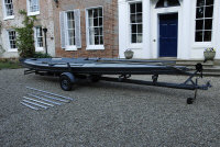 HOLLAND & HOLLAND A 1 1/2-INCH BORE SCREW BREECH PUNT GUN, NO. 20049 together with its punt, trailer, etc, a complete shooting rig, the 102-inch barrel with trunions, signed by the maker Holland & Holland , 98 New Bond Street, London, No. 20049, the massive breech block dropping to reveal the heavily threaded breech, locking latch and cocking lever and with chequered stock, with screw breech block, cartridges, heads, etc, together with its matching grey-painted punt with breeching ropes, oars, etc, together with its custom-made trailer