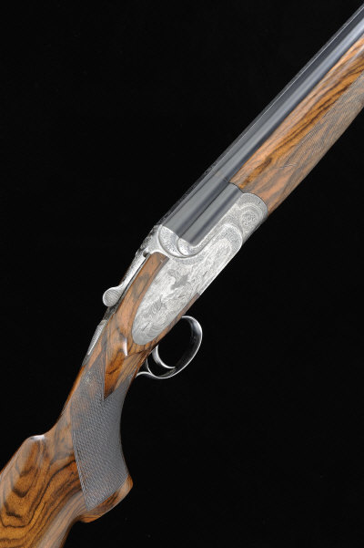 ABBIATICO & SALVINELLI A 12-BORE "FAMARS ML" MODEL SINGLE TRIGGER OVER AND UNDER EJECTOR GUN, NO. S0055 29-inch monobloc barrels with 2 3/4-inch chambers about 3/4 and full choke borings, solid file cut rib, the frame, lock plates and top lever engraved with fine scrollwork surrounding highly detailed scenes of game against landscapes, the left lock with woodcock, the right with grouse, the action base with pheassant, the trigger plate signed by the engraver, D. Bonsi, rolled edge trigger guard, 14 1/4-inch well figured stock with pistol grip, 7lb. 4oz., Italian nitro proof, in its maker's case with certificates, etc