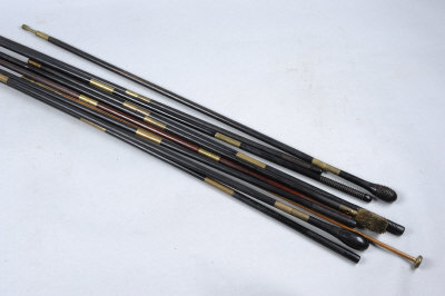 TEN GUNMAKERS CLEANING RODS of various one, two and three piece patterns, some ebony rods with brass fittings |