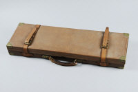 WILLIAM EVANS A BRASSBOUND OAK AND LEATHER GUN CASE with compartment for 28-inch barrels; together with a leather leg-of-mutton case |