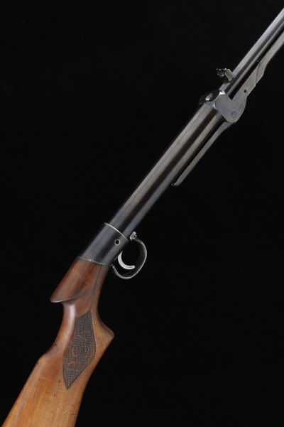 BSA A .177 LIGHT PATTERN UNDERLEVER AIR RIFLE, NO. L39643 17 1/4-inch barrel with adjustable rear sight, loading tap, 14-inch figured stock with pistol grip, cracked at the head, 5lb. 14oz., professionally refinished overall, trigger and trigger guard replaced; together with a BSA .177 break barrel air rifle, no. 1060 (2) |