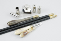 J. PURDEY & SONS A GROUP OF NAMED GUNMAKERS ACCESSORIES comprising: a pair of horn-handled turnscrews, matching horn-handled cleaning rod, maker's oil bottle and 2 pairs of snap caps (16 and 20-bore) |