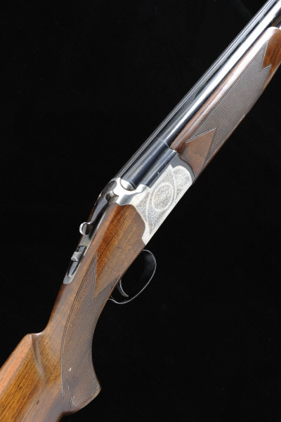27 1/2-inch monobloc barrels with 2 3/4-inch chambers with interchangeable choke tubes, machined ventilated rib, the frame with scroll decoration, selective single trigger, 14 1/4-inch stock with pistol grip and recoil pad, 7lb. 9oz., nitro proof; together with a Benelli 12-bore self-loading gun, no. A77222, 27 1/2-inch barrel, restricted magazine capacity, Italian nitro proof (2)